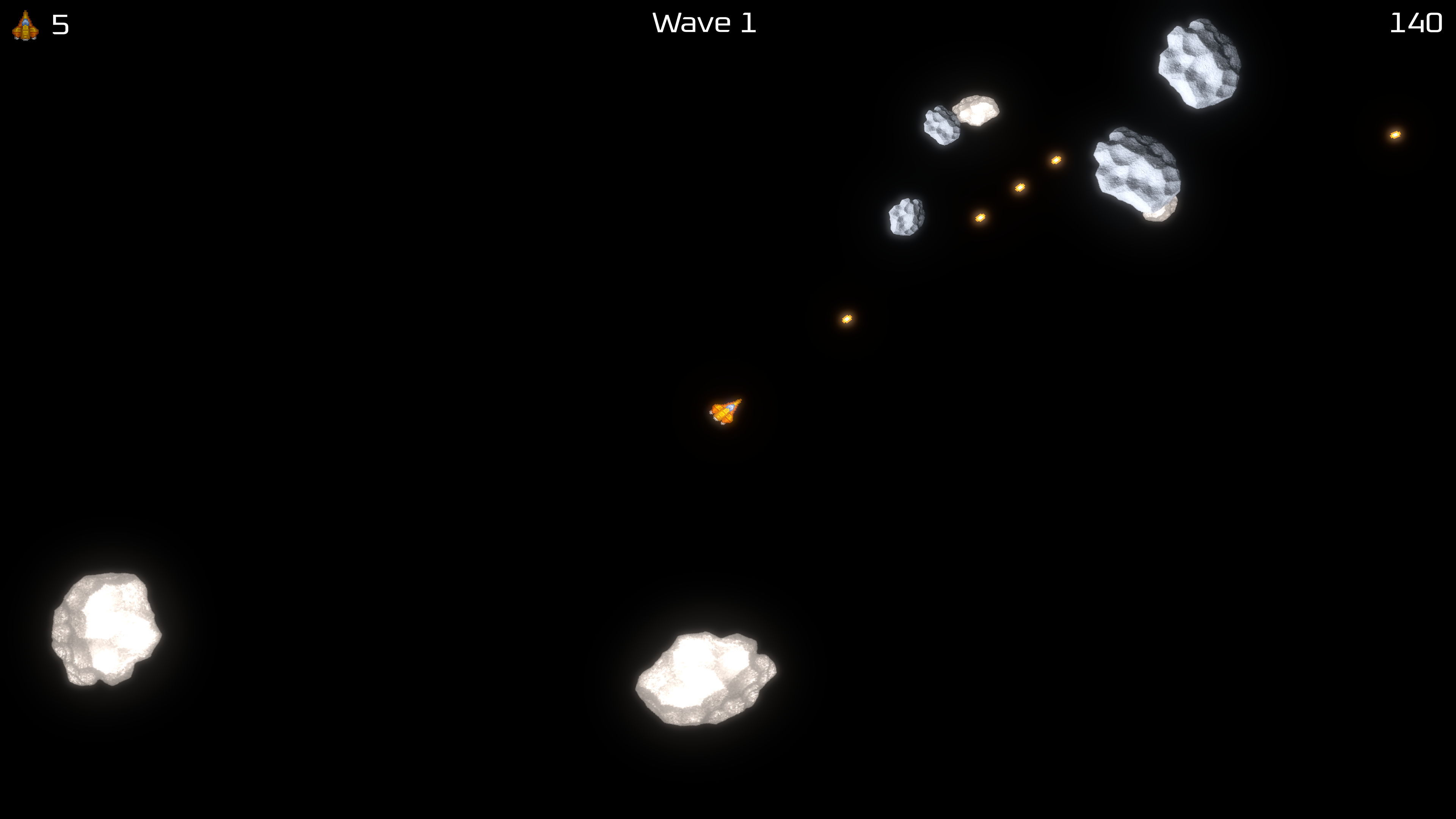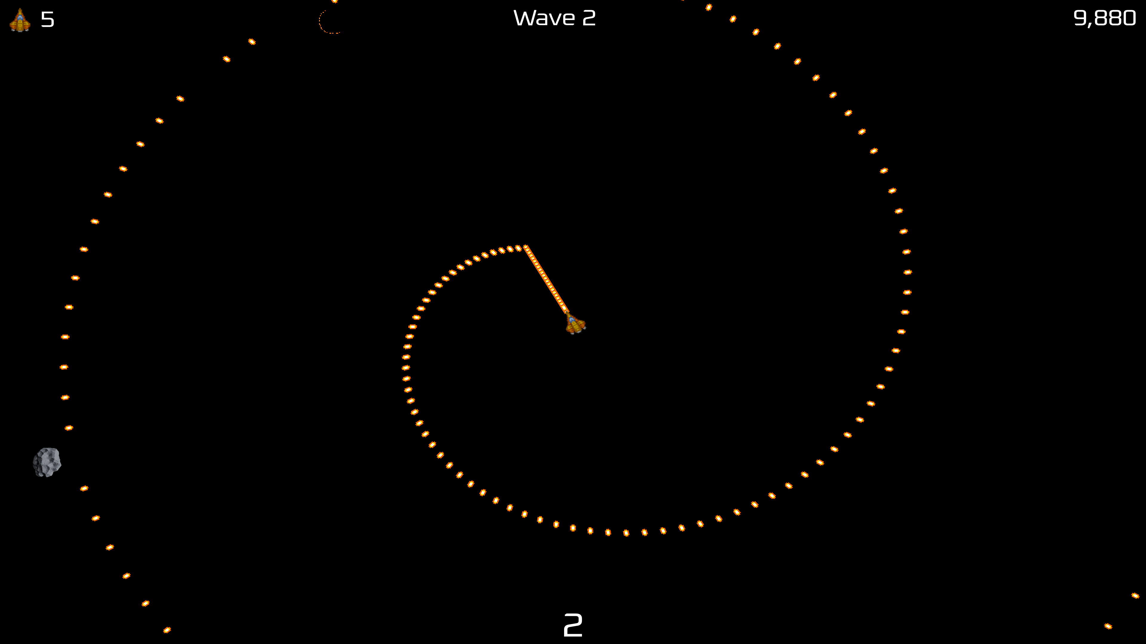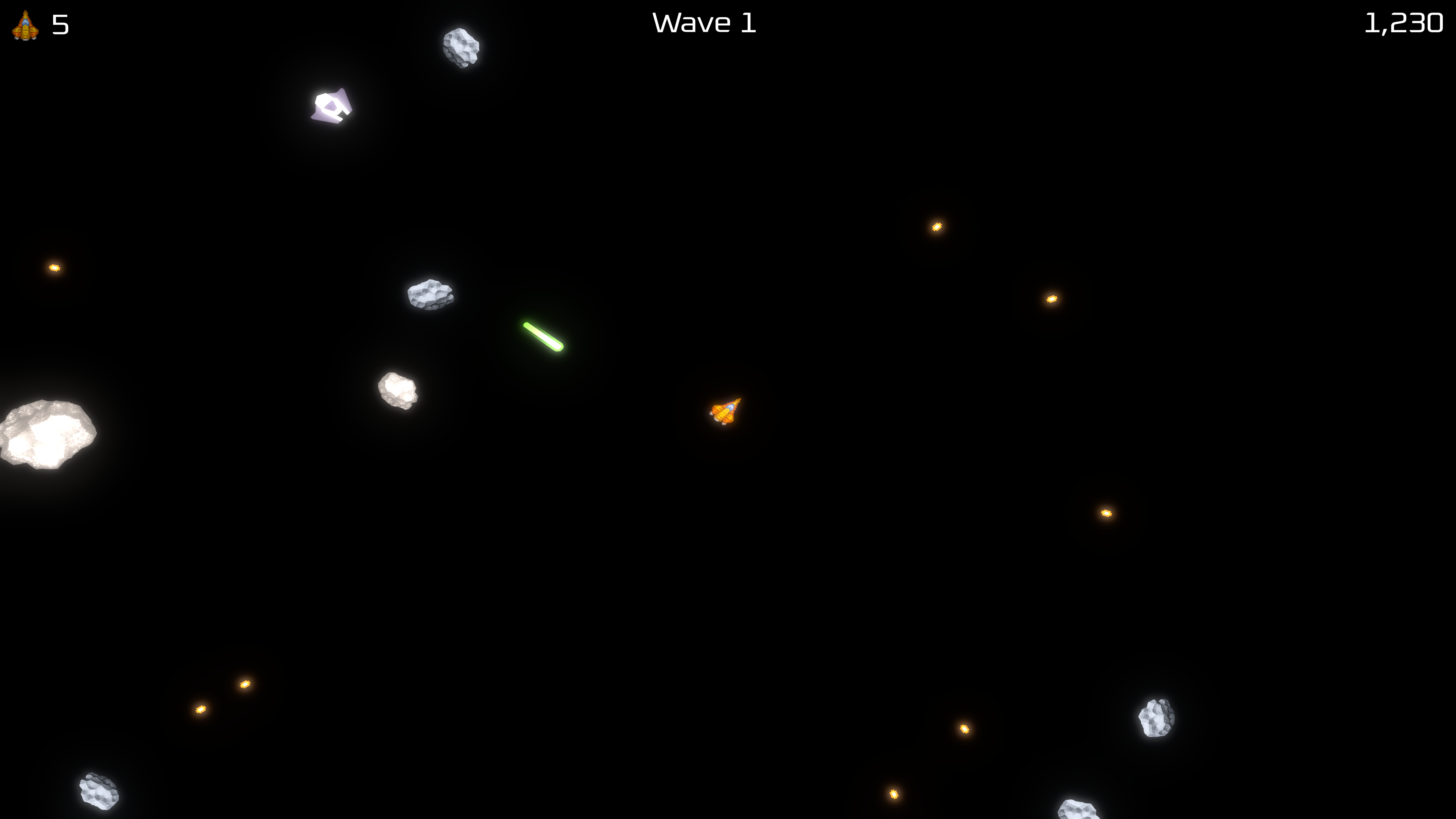 In the vein of Asteroids clones comes yet another clone of the arcade classic. Play through ever-difficult waves of asteroids and enemy ships with updated graphics, a music soundtrack, and even a rare powerup. Try it out with glow effects enabled, found in Settings.