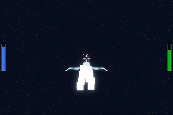 Shields are shown on the left side. Once they reach zero it's game over. Weapon energy is on the right in green. It will recharge over time.